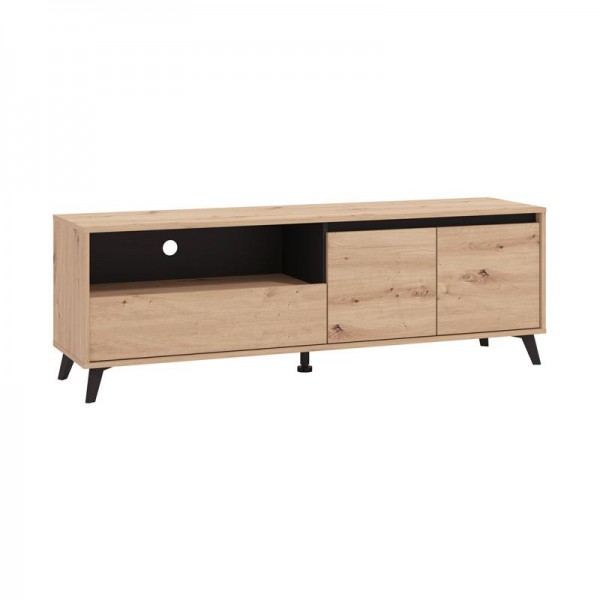 Το έπιπλο τηλεόρασης Stirling ,σύγχρονης σχεδίασης, συνδυάζει λειτουργικότητα και αισθητική. Διαθέτει χώρο αποθήκευσης με δύο πόρτες για να κρατάει τα αντικείμενά σας οργανωμένα και κρυμμένα. Επιπλέον, έχει ειδικό χώρο για την τοποθέτηση συσκευών ήχου, όπως ηχομπάρες ή ενισχυτές, παρέχοντας εύκολη πρόσβαση και εξοικονόμηση χώρου.