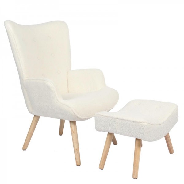 Πολυθρόνα Μπερζέρα Με Υποπόδιο ArteLibre LENNOX Μπεζ Βελούδο/Ξύλο 96x68x73cm