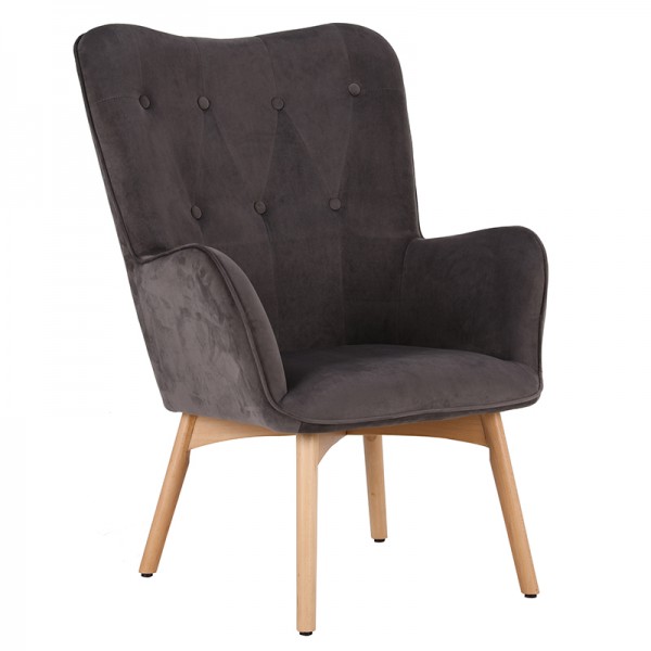 ΠΟΛΥΘΡΟΝΑ Fylliana FL8009 ΓΚΡΙ ΒΕΛΟΥΔΟ ΜΕ ΞΥΛΙΝΑ ΠΟΔΙΑ 67x72x97εκ
