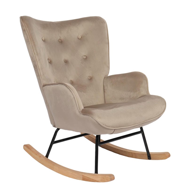 Πολυθρόνα Κουνιστή ArteLibre DARIA Ανοιχτό Καφέ Βελούδο/Μέταλλο/Ξύλο 85x69x90cm