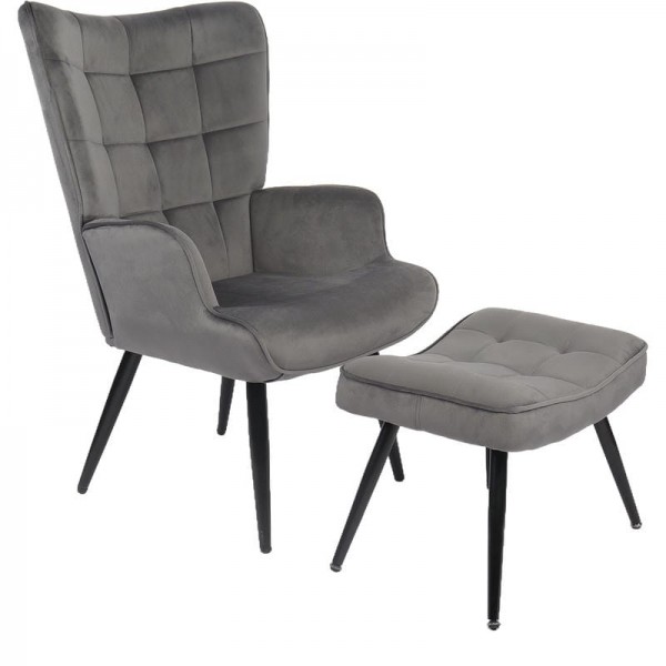 Πολυθρόνα Μπερζέρα Με Υποπόδιο ArteLibre LENNOX Γκρι Βελούδο/Ξύλο 96x68x73cm