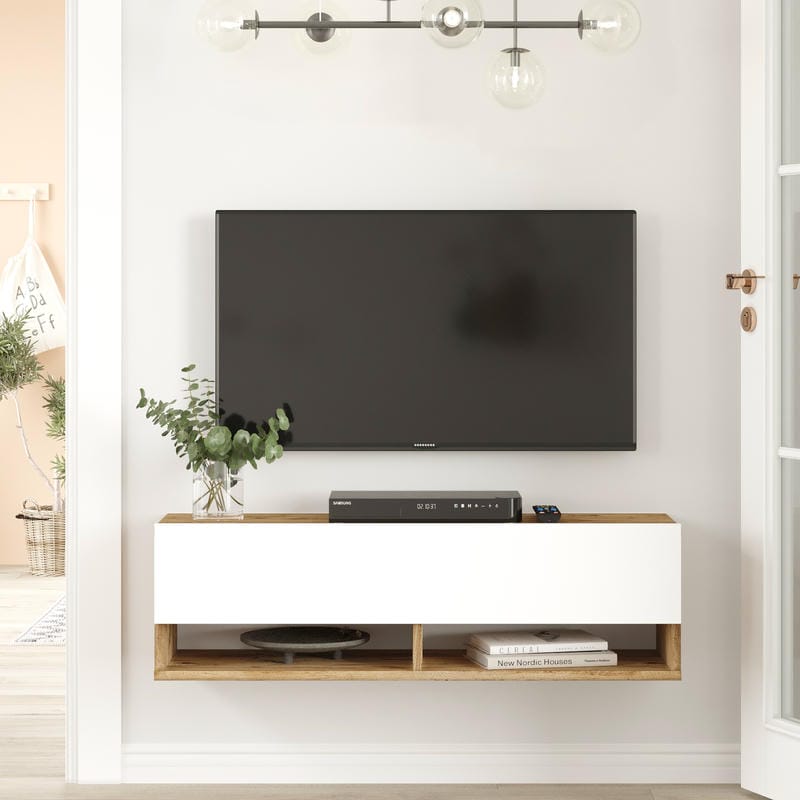 Έπιπλο Τηλεόρασης ArteLibre INVERIE Πεύκο/Λευκό Μοριοσανίδα 100x31.6x29.6cm