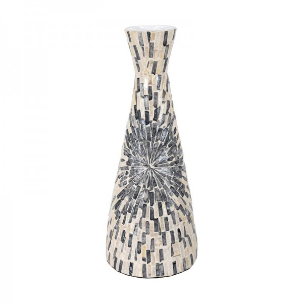 ΕΠΙΤΡΑΠΕΖΙΟ ΒΑΖΟ BAMBOO-ΚΟΧΥΛΙ Fylliana FL03 ΓΚΡΙ-ΛΕΥΚΟ ΧΡΩΜΑ 16x37εκ
