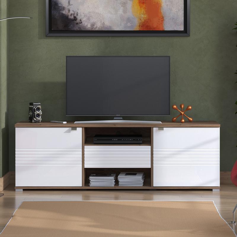 ΕΠΙΠΛΟ ΤΗΛΕΟΡΑΣΗΣ GRENOBLE ΛΕΥΚΟ-FLAGSTAFF OAK-ΛΕΥΚΟ HIGH GLOSS FOIL 176x40x57εκ