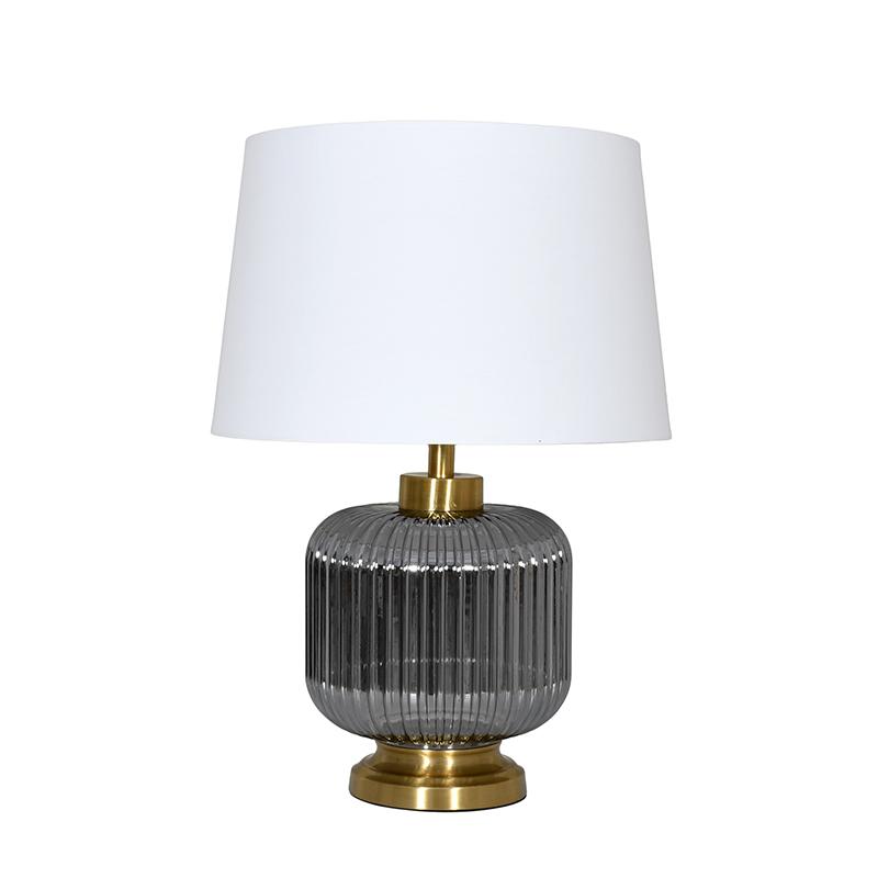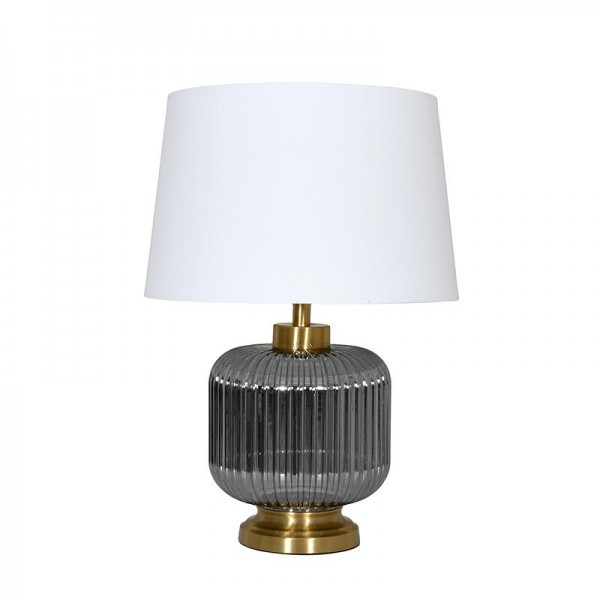 Αναβαθμίστε τη διακόσμηση του χώρου σας με αυτό το κομψό επιτραπέζιο φωτιστικό, που συνδυάζει γυαλί και μέταλλο στη βάση του για ένα διαχρονικό αισθητικό αποτέλεσμα. Το φωτιστικό διαθέτει υφασμάτινο καπέλο, το οποίο προσφέρει απαλό και ζεστό φωτισμό, ιδανικό για το σαλόνι, το υπνοδωμάτιο ή το γραφείο σας. Ο εκλεπτυσμένος σχεδιασμός του το καθιστά ιδανική προσθήκη για χώρους με μοντέρνα ή κλασική διακόσμηση.