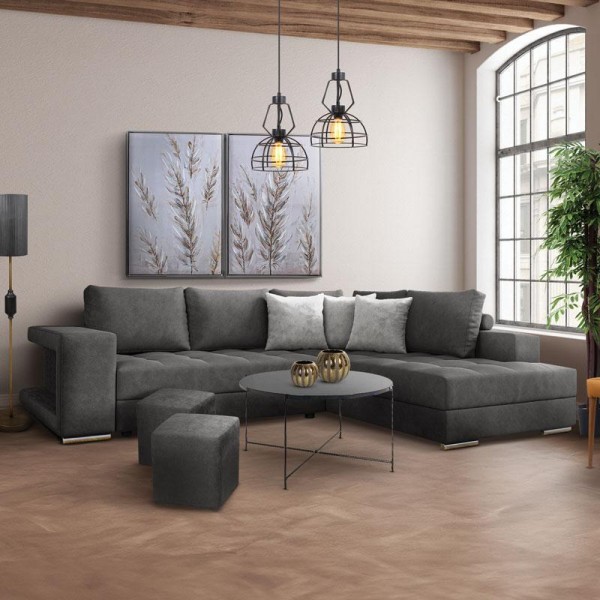 ΚΑΝΑΠΕΣ ΔΕΞΙΑ ΓΩΝΙΑ Fylliana New Karina ΓΚΡΙ ΧΡΩΜΑ ΜΕ ΑΝ. ΓΚΡΙ ΔΙΑΚΟΣΜΗΤΙΚΑ ΜΑΞΙΛΑΡΙΑ ΚΑΙ ΣΚΑΜΠΟ 278x218x85εκ