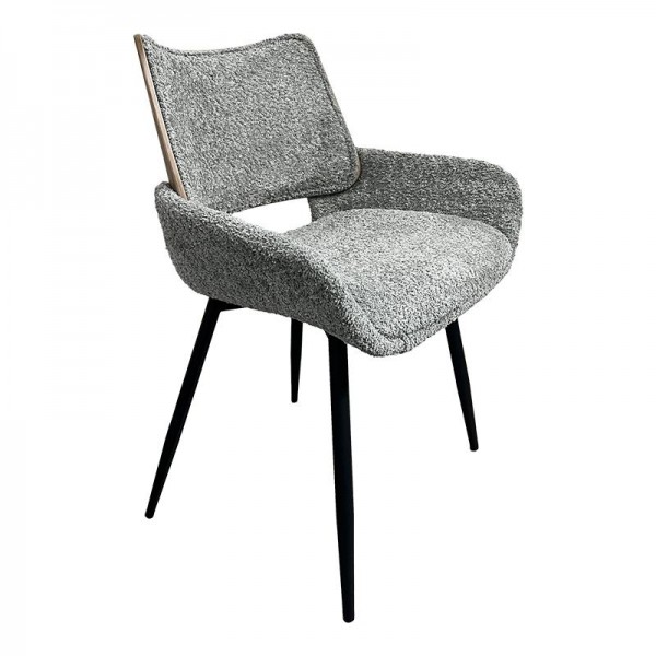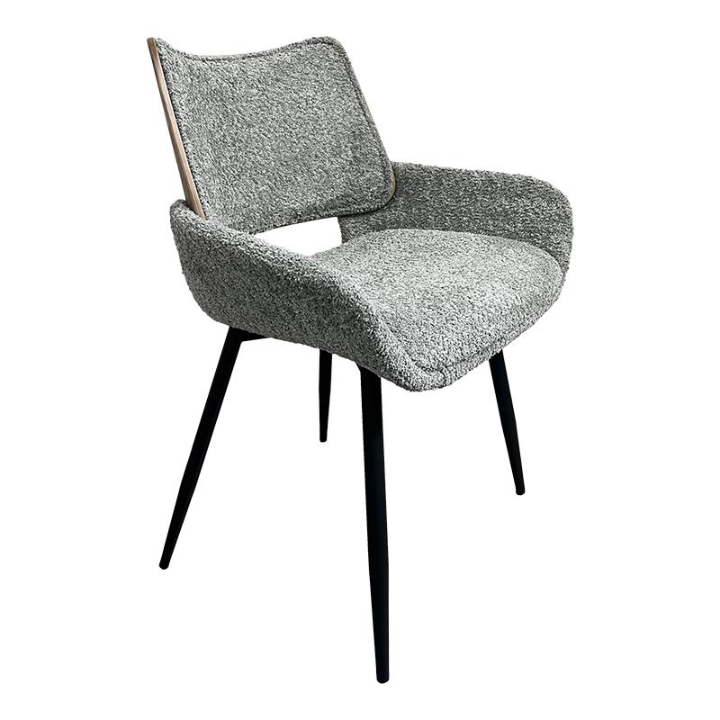 Καρέκλα τραπεζαρίας με σκελετό από plywood, επενδεδυμένο με υφασμα και μεταλλικά πόδια, συνδυάζοντας άνεση και στυλ. Ο σκελετός από plywood προσφέρει αντοχή και ελαφρύ βάρος, ενώ η επένδυση με υφασματικό υλικό προσδίδει αίσθηση ζεστασιάς και πολυτέλειας.Τα μεταλλικά πόδια προσδίδουν σταθερότητα και μοντέρνο ύφος.Η καρέκλα σχεδιάστηκε με έμφαση στην εργονομία, προσφέροντας άνετη στήριξη κατά τη διάρκεια των γευμάτων.