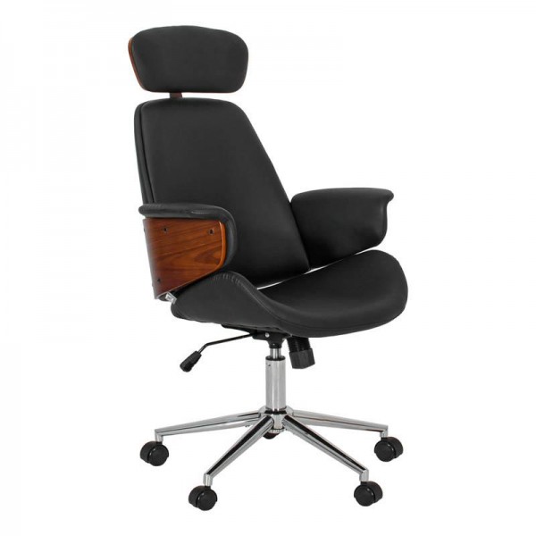 ΚΑΡΕΚΛΑ ΓΡΑΦΕΙΟΥ ΔΙΕΥΘΥΝΤΗ Fylliana FL921 ΜΑΥΡΟ ΤΕΧΝΟΔΕΡΜΑ ΜΕ ΚΑΡΥΔΙ ΞΥΛΟ 68x68x125εκ