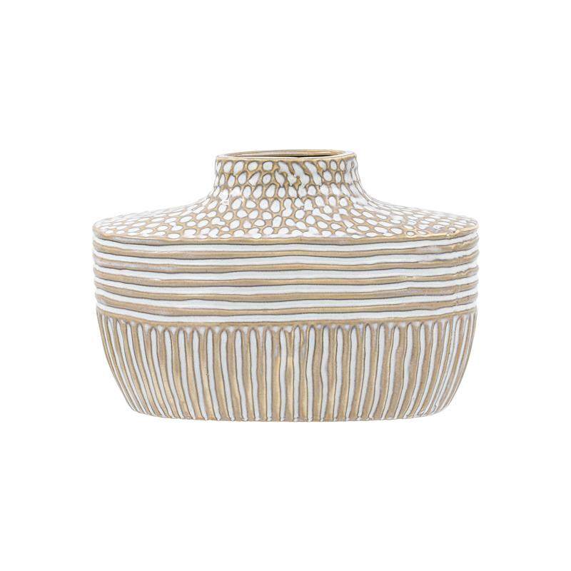 Προσθέστε μια πινελιά κομψότητας στον χώρο σας με αυτό το εντυπωσιακό διακοσμητικό βάζο. Χειροποίητο από κεραμικό και διακοσμημένο με μοναδικές λεπτομέρειες, αποτελεί την ιδανική επιλογή για εκλεπτυσμένους και μοντέρνους εσωτερικούς χώρους. Τοποθετήστε το στο τραπέζι, το ράφι ή την κονσόλα σας και δώστε έναν ιδιαίτερο χαρακτήρα στη διακόσμηση του σπιτιού σας.