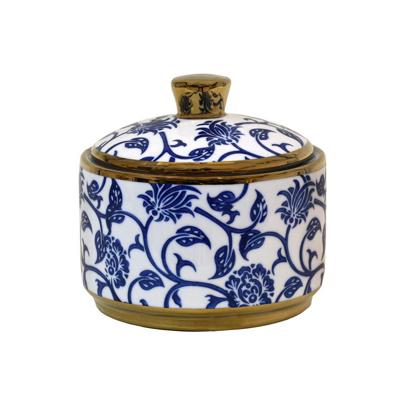 ΚΕΡΑΜΙΚΟ ΔΟΧΕΙΟ ΜΕ ΚΑΠΑΚΙ Fylliana FL22960 ΜΠΛΕ-ΛΕΥΚΟ-ΧΡΥΣΟ ΧΡΩΜΑ 15x11εκ
