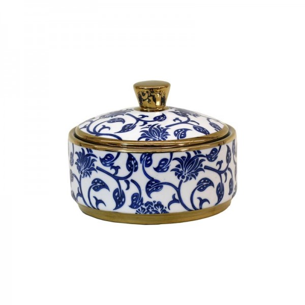 ΚΕΡΑΜΙΚΟ ΔΟΧΕΙΟ ΜΕ ΚΑΠΑΚΙ Fylliana FL22960 ΜΠΛΕ-ΛΕΥΚΟ-ΧΡΥΣΟ ΧΡΩΜΑ 15x11εκ