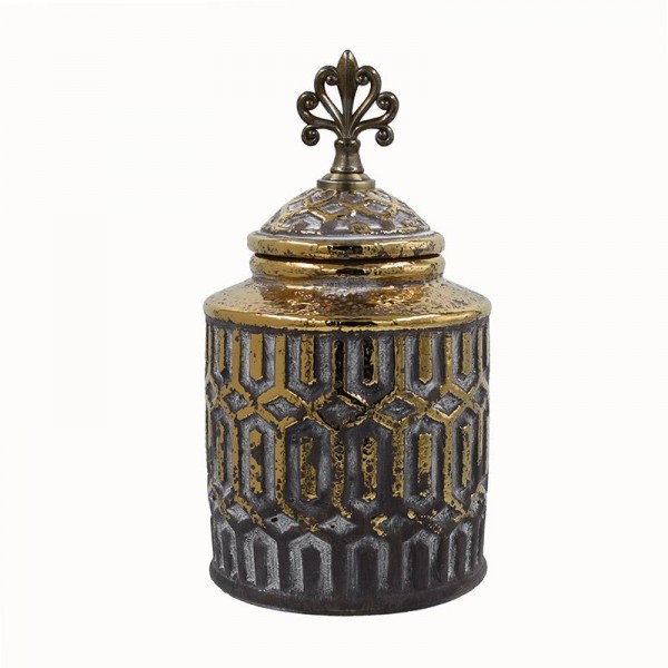 ΚΕΡΑΜΙΚΟ ΒΑΖΟ Fylliana FL2334 ΜΑΥΡΟ-ΧΡΥΣΟ ΧΡΩΜΑ 17x35εκ