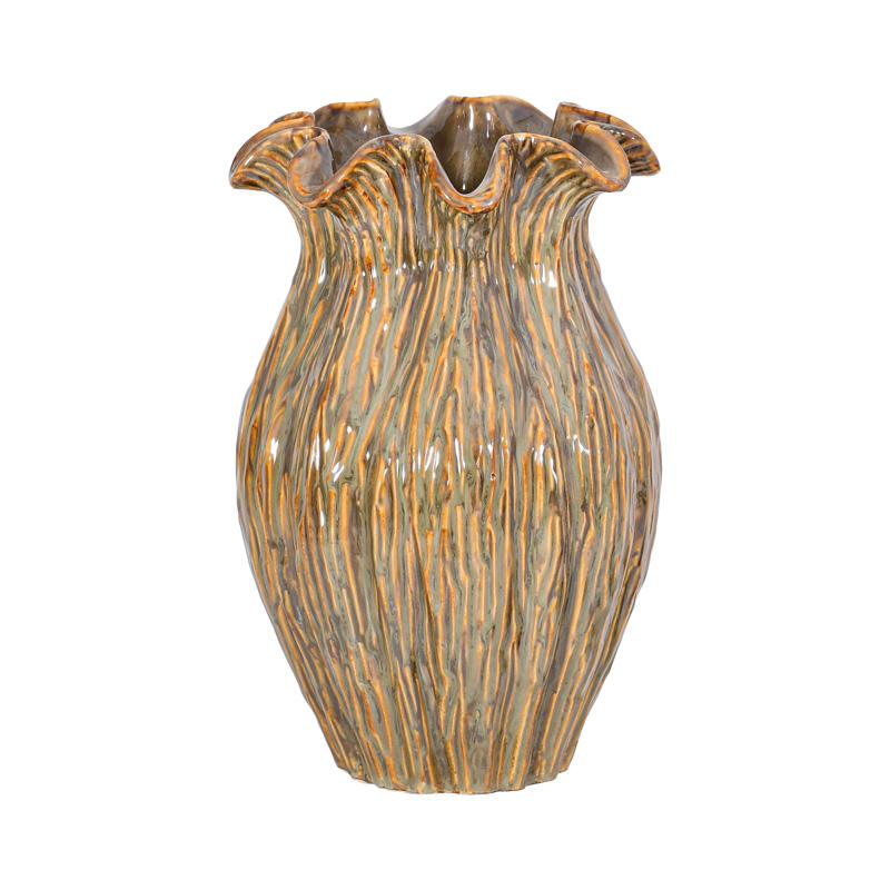 Για εσάς που αναζητάτε ένα κομψό, εντυπωσιακό διακοσμητικό στοιχείο που θα αναβαθμίσει κάθε χώρο του σπιτιού ή του επαγγελματικού σας περιβάλλοντος, το κεραμικό βάζο είναι η απόλυτη επιλογή. Με έντονες ανάγλυφες υφές και χειροποίητη αισθητική, προσφέρει μια μοναδική πινελιά πολυτέλειας και αυθεντικότητας. Το ιδιαίτερο design του το καθιστά ιδανικό είτε για τοποθέτηση στο πάτωμα, είτε πάνω σε τραπέζι, κομμό ή κονσόλα, δίνοντας ζωντάνια και καλλιτεχνική αίσθηση στον χώρο.