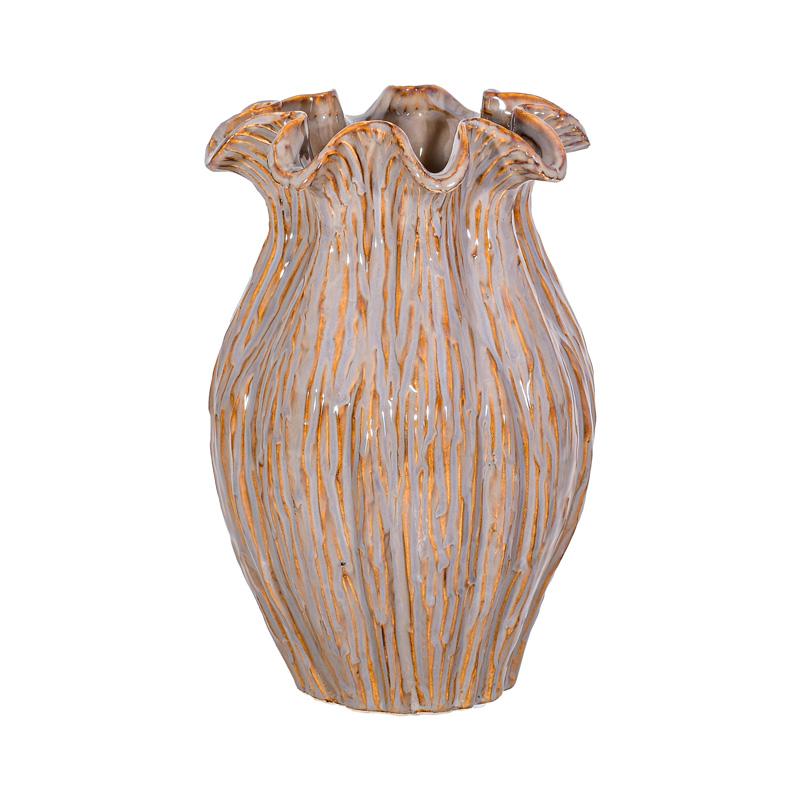 Για εσάς που αναζητάτε ένα κομψό, εντυπωσιακό διακοσμητικό στοιχείο που θα αναβαθμίσει κάθε χώρο του σπιτιού ή του επαγγελματικού σας περιβάλλοντος, το κεραμικό βάζο είναι η απόλυτη επιλογή. Με έντονες ανάγλυφες υφές και χειροποίητη αισθητική, προσφέρει μια μοναδική πινελιά πολυτέλειας και αυθεντικότητας. Το ιδιαίτερο design του το καθιστά ιδανικό είτε για τοποθέτηση στο πάτωμα, είτε πάνω σε τραπέζι, κομμό ή κονσόλα, δίνοντας ζωντάνια και καλλιτεχνική αίσθηση στον χώρο.