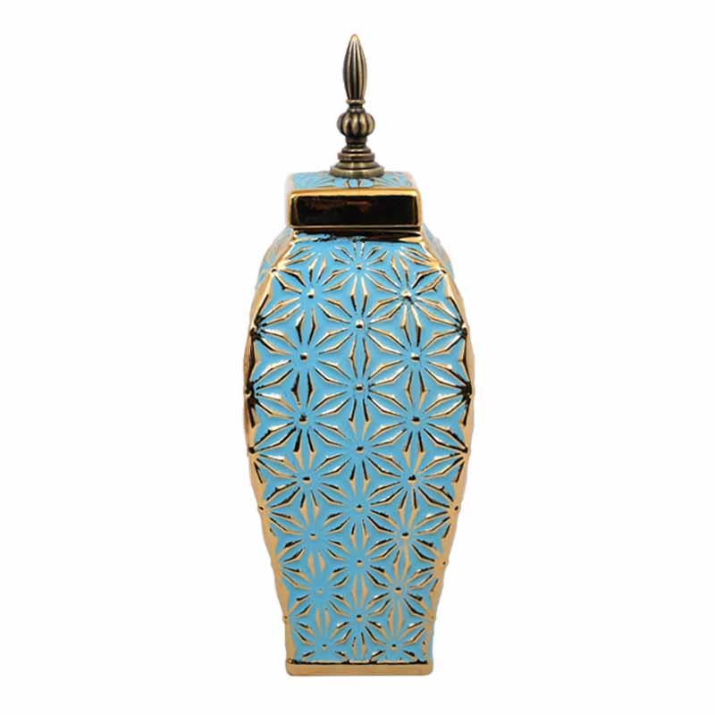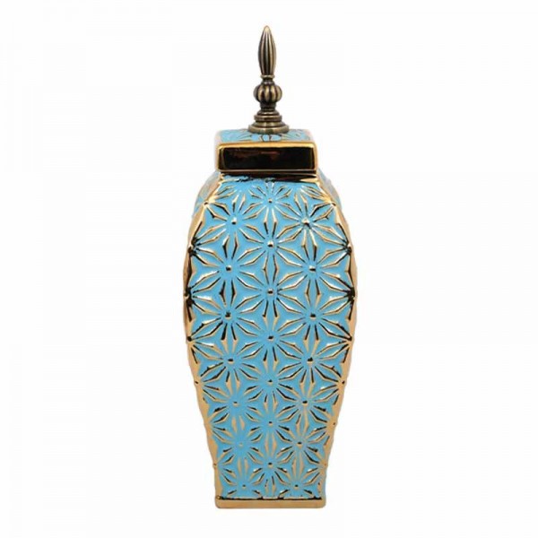 ΚΕΡΑΜΙΚΟ ΒΑΖΟ Fylliana ΣΙΕΛ-ΧΡΥΣΟ 14x14x39εκ