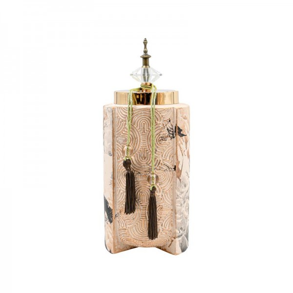 Αναβαθμίστε την αισθητική του χώρου σας με αυτό το εντυπωσιακό κεραμικό διακοσμητικό δοχείο. Με εκλεπτυσμένο σχεδιασμό που συνδυάζει φυσική υφή και πολυτελείς λεπτομέρειες, αποτελεί ένα κομψό στοιχείο για κάθε σύγχρονο χώρο.