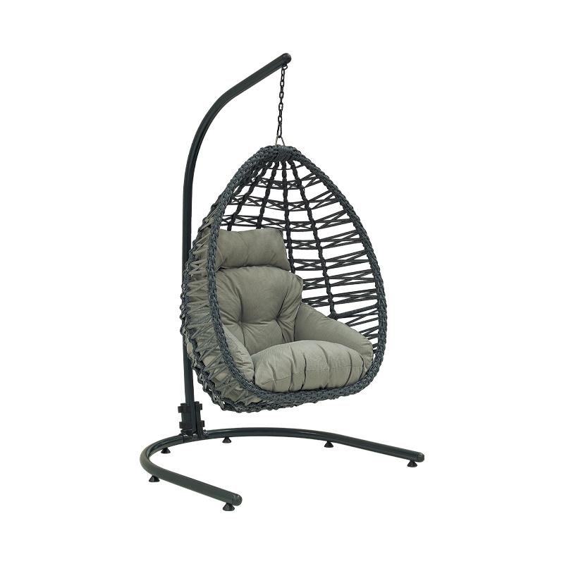 Κρεμαστή πολυθρόνα-φωλιά με εξαιρετικό design, μεταλλική βάση, με ιδιαίτερη πλέξη poly rope και μαξι..