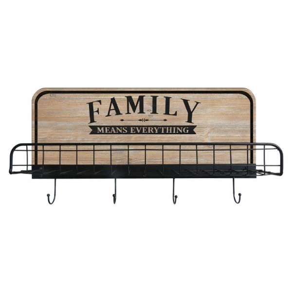 ΚΡΕΜΑΣΤΡΑ ΤΟΙΧΟΥ ΜΕ ΡΑΦΙ Fylliana "Family" ΜΕΤΑΛΛΟ-ΞΥΛΟ ΜΑΥΡΟ-ΦΥΣΙΚΟ 60x12x31εκ sls