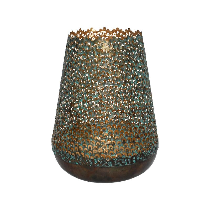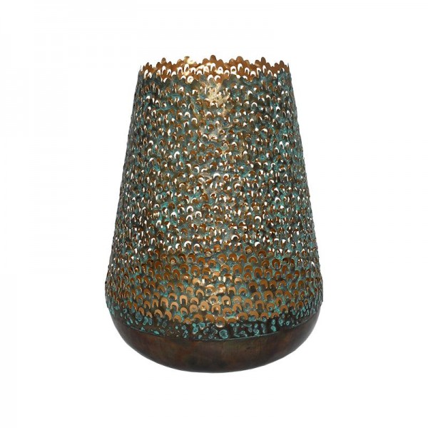 Κομψό μεταλλικό φανάρι για κερί που αναδεικνύει μια ατμόσφαιρα ζεστασιάς. Το σχεδιασμός του προσφέρει κομψότητα και μοντέρνα αισθητική, ενώ ο μεταλλικός κορμός προσφέρει ανθεκτικότητα. Ιδανικό για τη δημιουργία ενός ρομαντικού περιβάλλοντος σε εξωτερικούς χώρους ή εσωτερική διακόσμηση. Η ειδική διάτρητη κατασκευή επιτρέπει το φως του κεριού να δημιουργήσει όμορφα παιχνίδια φωτός. Ένα υπέροχο διακοσμητικό που προσθέτει φινέτσα και ατμόσφαιρα σε κάθε χώρο.