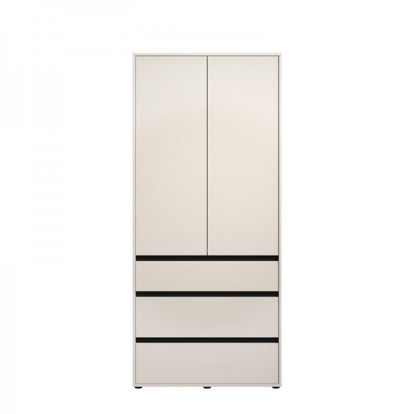 Η ντουλάπα Corbett είναι η ιδανική λύση για οργανωμένη αποθήκευση ρούχων και αξεσουάρ.Διαθέτει δύο πόρτες, που ανοίγουν σε έναν ευρύχωρο εσωτερικό χώρο, εξοπλισμένο με ράγα για κρέμασμα ρούχων, εξασφαλίζοντας ότι τα ρούχα σας θα παραμείνουν χωρίς ζάρες και τακτοποιημένα. Επιπλέον, διαθέτει τρία ευρύχωρα συρτάρια, ιδανικά για μικρότερα αντικείμενα, όπως εσώρουχα, αξεσουάρ ή λευκά είδη, προσφέροντας εύκολη πρόσβαση και μέγιστη οργάνωση.