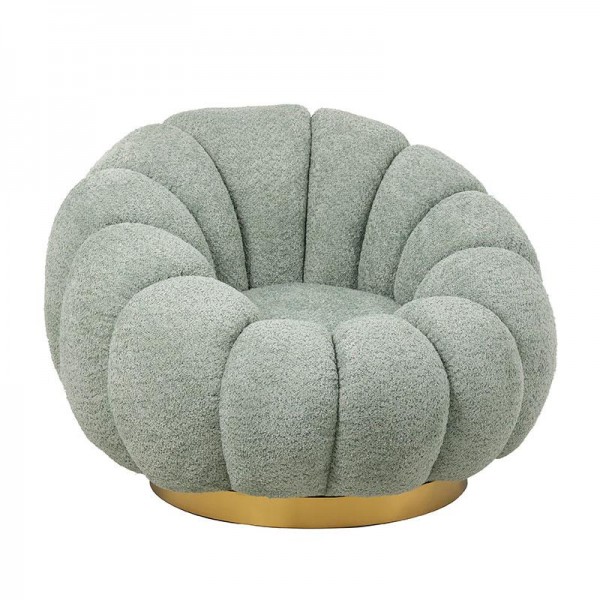 Η περιστρεφόμενη πολυθρόνα Delori συνδυάζει το μοντέρνο και το κλασικό, με ένα εξαιρετικά εκλεπτυσμένο σχέδιο. Το ύφασμα με μπουκλέ υφή προσφέρει μία αίσθηση πολυτέλειας και εξαιρετικής ποιότητας, ενώ η μεταλλική βάση σε χρυσό χρώμα προσδίδει μία ιδιαίτερη και κομψή πινελιά στο χώρο. Ο μηχανισμός περιστροφής εξασφαλίζει άνεση και ευχρηστία, επιτρέποντας την εύκολη και αθόρυβη κίνηση της πολυθρόνας σε όλες τις κατευθύνσεις.