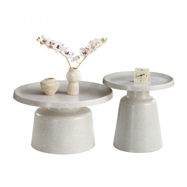 Ένα σύγχρονο και λειτουργικό σετ δύο τραπεζιών σαλονιού, ιδανικό για μοντέρνους χώρους με industrial χαρακτήρα. Οι στρογγυλές επιφάνειες από μεταλλικό φύλλο προσδίδουν στιβαρότητα και στυλ, ενώ η μεταλλική βάση με ηλεκτροστατική βαφή εξασφαλίζει αντοχή στον χρόνο και κομψή ματ υφή. Τα τραπέζια μπορούν να χρησιμοποιηθούν μαζί ή ανεξάρτητα, δημιουργώντας ευελιξία στη διαμόρφωση του χώρου.