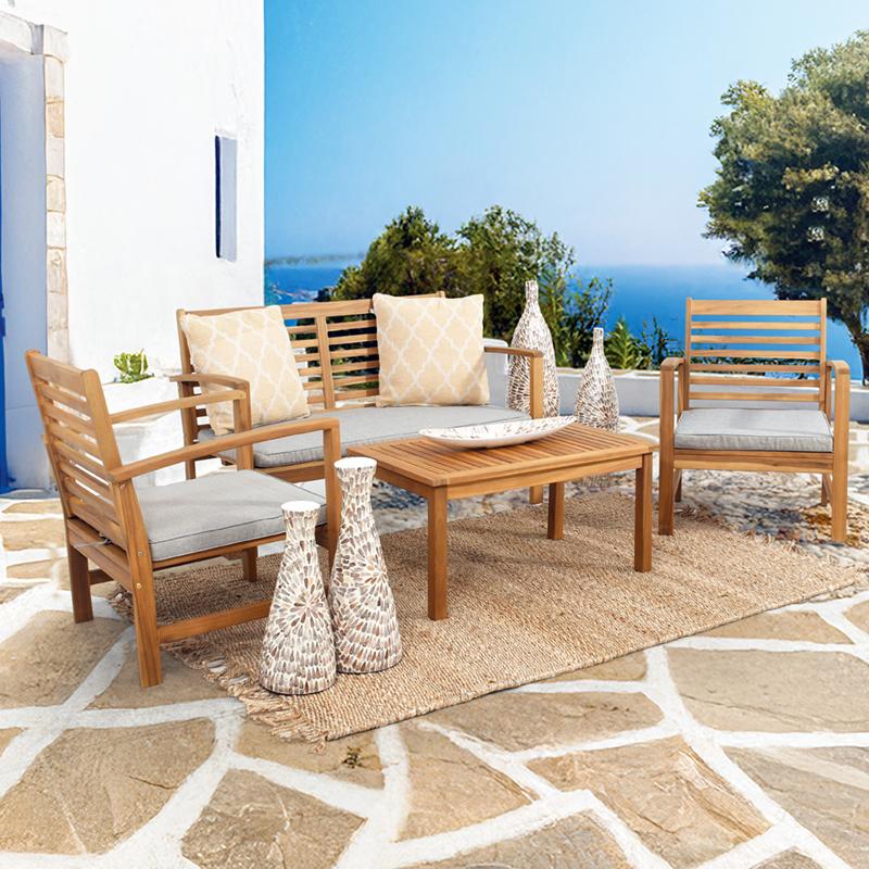 Το Σετ Κήπου 4 Τεμαχίων με Σκελετό από Ακακία και Επένδυση Πλάτης και Καθίσματος με Μαξιλάρια είναι ..