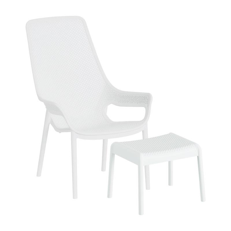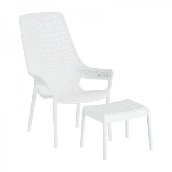 Απολαύστε στιγμές χαλάρωσης στον κήπο, στη βεράντα ή στο μπαλκόνι σας με αυτό το κομψό σετ εξωτερικού χώρου, που περιλαμβάνει μία αναπαυτική πολυθρόνα και το αντίστοιχο υποπόδιο. Ο εργονομικός σχεδιασμός της πολυθρόνας αγκαλιάζει το σώμα, ενώ το υποπόδιο προσφέρει άνεση για τα πόδια, δημιουργώντας μια ιδανική γωνιά ξεκούρασης και ανάγνωσης.