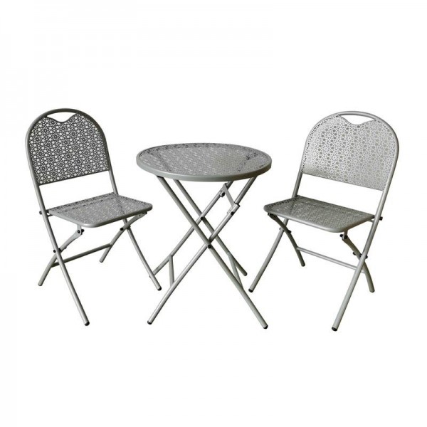 ΣΕΤ ΜΕΤΑΛΛΙΚΟ ΤΡΑΠΕΖΙ ΚΗΠΟΥ Fylliana ΜΕ 2 ΚΑΡΕΚΛΕΣ Gordon ΓΚΡΙ ΧΡΩΜΑ