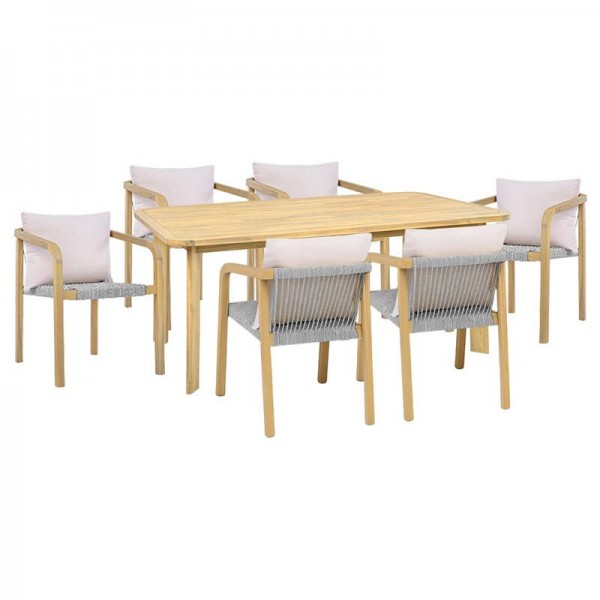 ΣΕΤ ΤΡΑΠΕΖΑΡΙΑ ΚΗΠΟΥ 7 ΤΕΜ ΞΥΛΟ ΑΚΑΚΙΑΣ Fylliana "Summerset" ΦΥΣΙΚΟ ΧΡΩΜΑ ΣΚΕΛΕΤΟΣ ΓΚΡΙ ΥΦΑΣΜΑ 180x100x75εκ