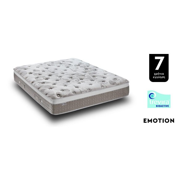 Το στρώμα EMOTION σχεδιάστηκε για να προσφέρει άνεση και φροντίδα, σε όσους αναζητούν ξεκούραση που διαρκεί! Η τεχνολογία Trevira Bioactive περιορίζει την ανάπτυξη βακτηρίων και αλλεργιών, χάρη στα ιόντα ασημιού που είναι ενσωματωμένα στη δομή της ίνας εσωτερικά. εξασφαλίζοντας μόνιμη διάρκεια των θετικών ιδιοτήτων του υφάσματος. Οι ιδιότητές του παραμένουν ενεργές, χωρίς να ξεθωριάζει ή να κιτρινίζει. Διαθέσιμο και σε ειδικές διαστάσεις κατόπιν παραγγελίας.