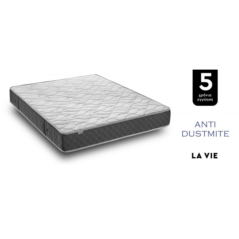 Το στρώμα LA VIE προσφέρει έναν ξεκούραστο, ισορροπημένο ύπνο, με τεχνολογίες που σέβονται το σώμα σου. Το ύφασμα knitted stretch με επεξεργασία Anti Dust Mite καταπολεμά την ανάπτυξη ακάρεων, χάρη σε φυσικά αιθέρια έλαια λεμονιού, λεβάντας και ευκαλύπτου, διατηρώντας το στρώμα υποαλλεργικό και υγιεινό.