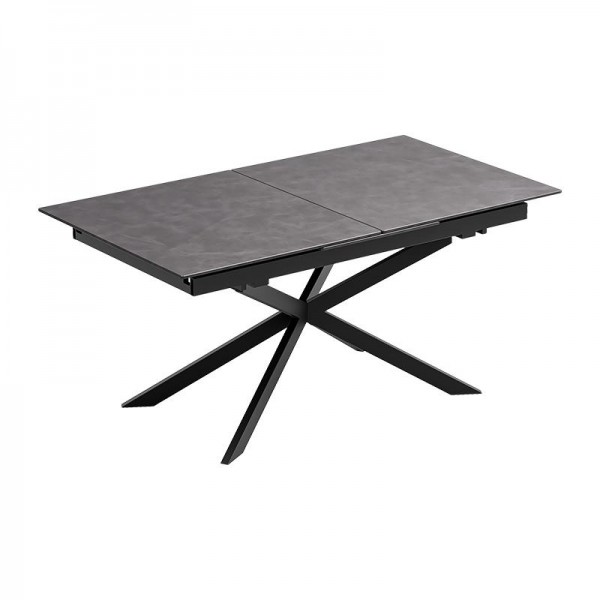 ΤΡΑΠΕΖΙ ΤΡΑΠΕΖΑΡΙΑΣ ΑΝΟΙΓΟΜΕΝΟ Fylliana FL017 ΜΕ ΓΚΡΙ ΚΕΡΑΜΙΚΗ ΕΠΙΦΑΝΕΙΑ ΚΑΙ ΜΑΥΡΑ ΜΕΤΑΛΛΙΚΑ ΠΟΔΙΑ 160(+50)x90x76εκ