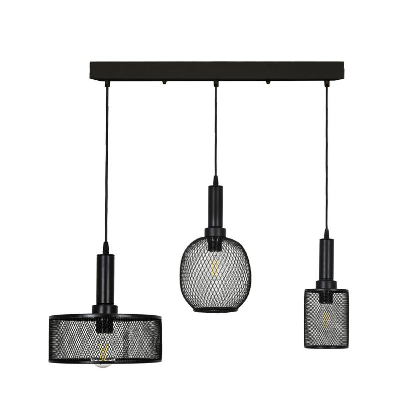 Ανανεώστε τον χώρο σας με το τρίφωτο φωτιστικό οροφής σε μαύρο χρώμα με βάση τύπου ράγας. Ο συνδυασμός τριών διαφορετικών καπέλων σε σχέδιο πλέγμα προσδίδει μοναδικό βιομηχανικό ύφος και δημιουργεί ιδιαίτερη ατμόσφαιρα με εντυπωσιακή διάχυση φωτός. Χάρη στη ράγα, τα φωτιστικά τοποθετούνται σε ίσια διάταξη, ιδανική για τοποθέτηση πάνω από τραπεζαρία, πάσο κουζίνας ή σε επαγγελματικό χώρο.