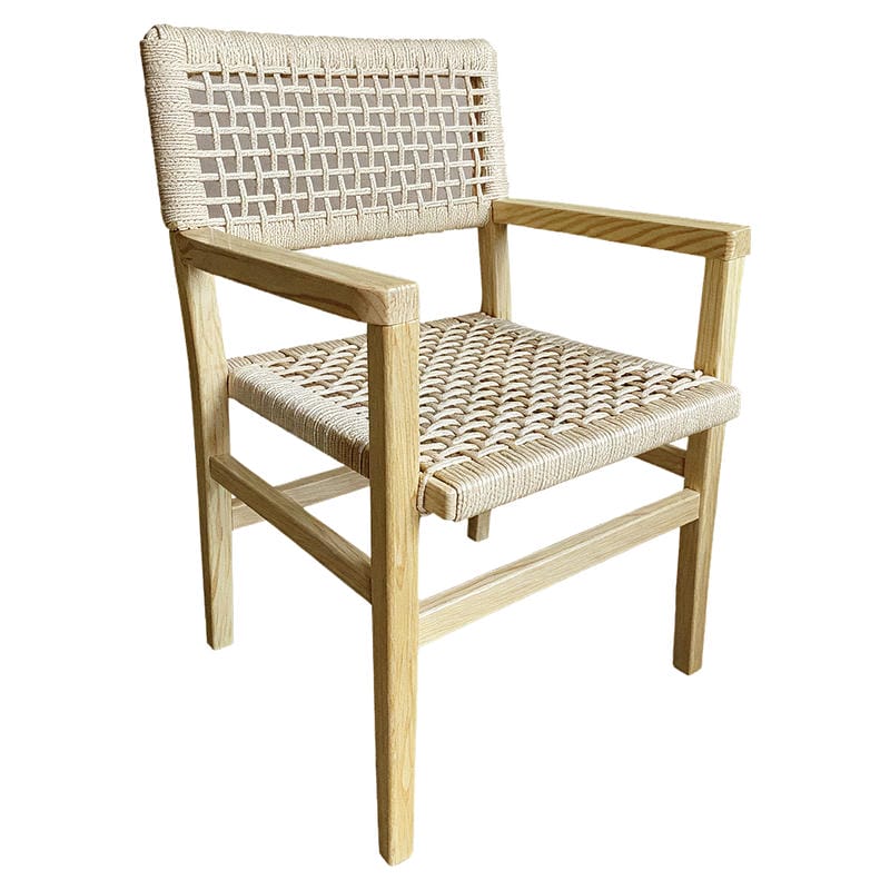 Κατασκευασμένη από ανθεκτικό ξύλο φτελιάς, η καρέκλα διαθέτει πλάτη και κάθισμα πλεγμένα με σχοινί. Η φυσική απόχρωση ξύλου συνδυάζεται με το σχοινί για ένα ζεστό και φιλόξενο αποτέλεσμα.