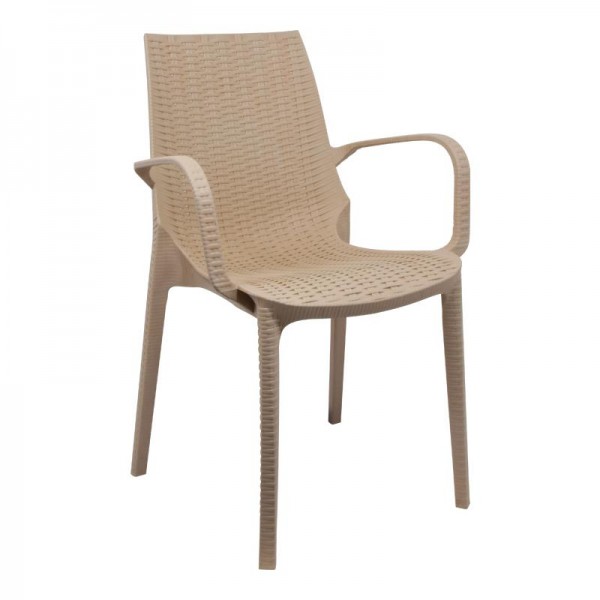 Καρεκλοπολυθρόνα εξοχής κατασκευασμένη από εξαιρετικής ποιότητας virgin πολυπροπυλένιο σε πλέξη rattan. Eξαιρετικά ανθεκτική, με UV προστασία των χρωμάτων από τον ήλιο και τις καιρικές συνθήκες, κατάλληλη για επαγγελματική ή οικιακή χρήση σε εξωτερικούς χώρους. Με εργονομικό σχεδιασμό και δυνατότητα στoίβαξης για ευκολία στη μεταφορά και οικονομία χώρου.
