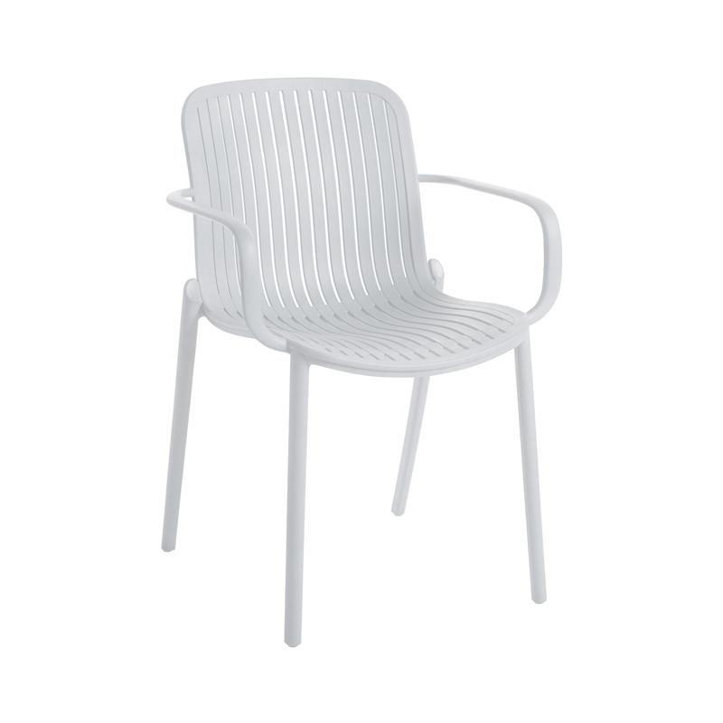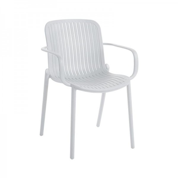 Η καρέκλα Iole συνδυάζει άνεση, κομψότητα και ανθεκτικότητα, αποτελώντας ιδανική επιλογή για εξωτερικούς και εσωτερικούς χώρους. Κατασκευασμένη από πολυπροπυλένιο (PP) υψηλής ποιότητας με UV προστασία, διατηρεί το λευκό της χρώμα αναλλοίωτο ακόμη και μετά από μακροχρόνια έκθεση στον ήλιο. Τα ενσωματωμένα μπράτσα προσφέρουν στήριξη και ξεκούραση, ενώ ο εργονομικός σχεδιασμός της πλάτης με πλέξη χαρίζει κομψότητα και πρακτικότητα.