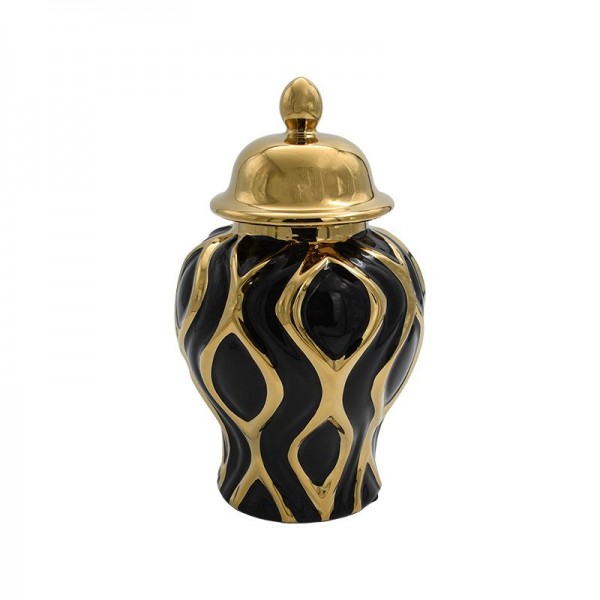 ΚΕΡΑΜΙΚΟ ΒΑΖΟ Fylliana FL2330 ΜΑΥΡΟ-ΧΡΥΣΟ ΧΡΩΜΑ 18x18x36εκ