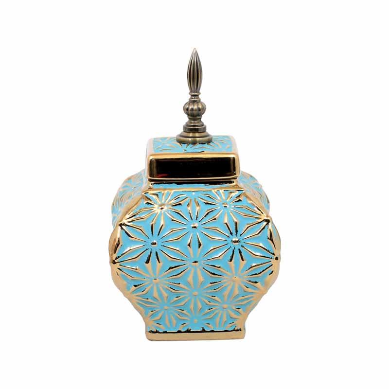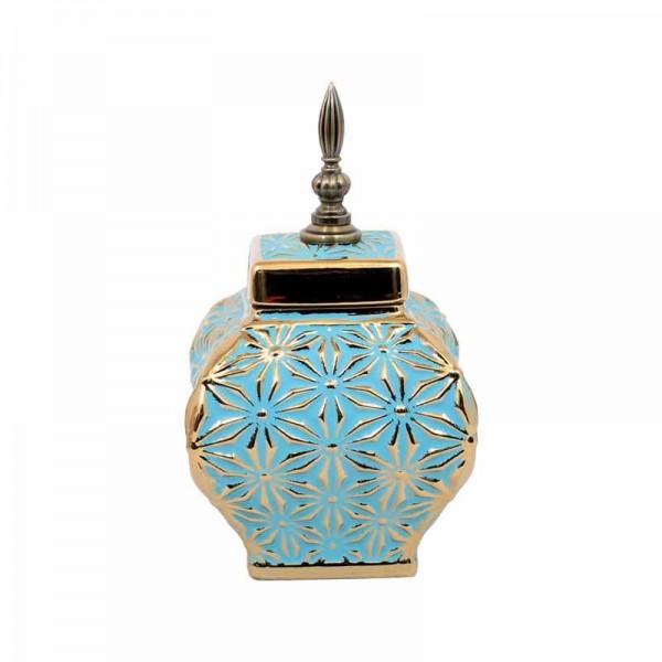 ΚΕΡΑΜΙΚΟ ΒΑΖΟ Fylliana ΣΙΕΛ-ΧΡΥΣΟ 15x15x26εκ