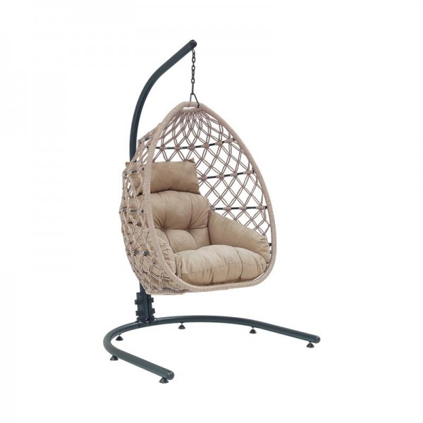 Κρεμαστή πολυθρόνα-φωλιά με εξαιρετικό design, μεταλλική βάση, με ιδιαίτερη πλέξη poly rope και μαξι..