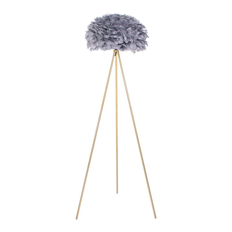Αναβαθμίστε τη διακόσμηση του χώρου σας με αυτό το εκλεπτυσμένο επιδαπέδιο φωτιστικό, που συνδυάζει τη σταθερότητα της μεταλλικής βάσης με την ελαφρότητα και τη μοναδική υφή του καπέλου από φτερά. Το ιδιαίτερο καπέλο δημιουργεί έναν απαλό, ατμοσφαιρικό φωτισμό, προσθέτοντας μια αίσθηση πολυτέλειας και ζεστασιάς στον χώρο σας.