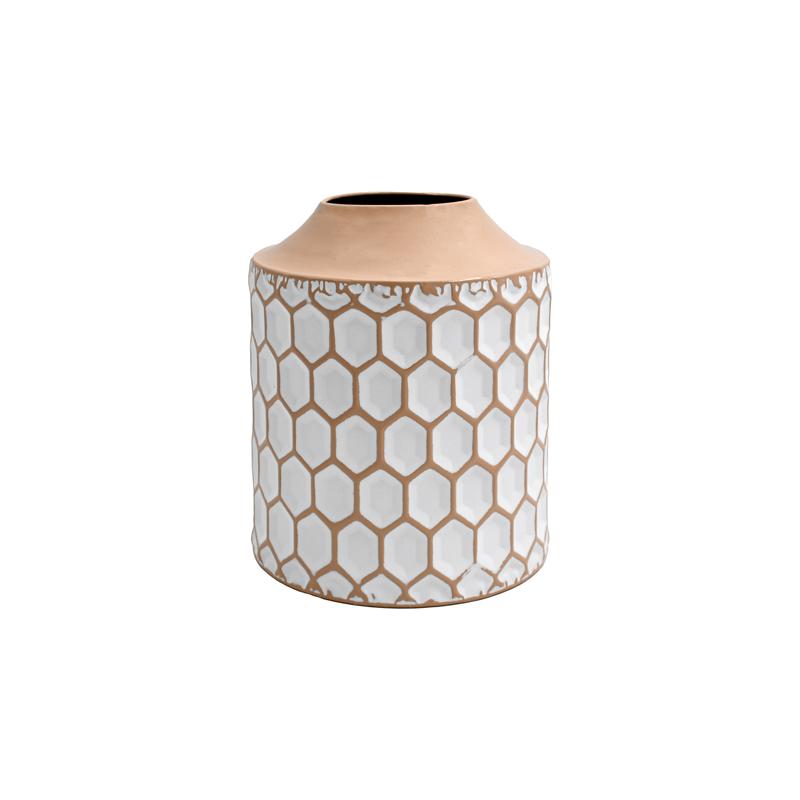 ΜΕΤΑΛΛΙΚΟ ΕΠΙΤΡΑΠΕΖΙΟ ΔΙΑΚΟΣΜΗΤΙΚΟ ΒΑΖΟ Fylliana FL364 ΜΠΕΖ-ΛΕΥΚΟ ΧΡΩΜΑ 19x23εκ