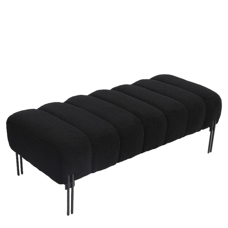 Κατασκευασμένο από υψηλής ποιότητας ύφασμα teddy και μαύρα μεταλλικά πόδια, το παγκάκι συνδυάζει άνεση και ανθεκτικότητα, προσφέροντας ένα κομψό και μοντέρνο στυλ.