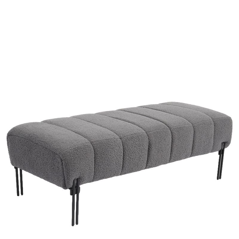 Κατασκευασμένο από υψηλής ποιότητας ύφασμα teddy και μαύρα μεταλλικά πόδια, το παγκάκι συνδυάζει άνεση και ανθεκτικότητα, προσφέροντας ένα κομψό και μοντέρνο στυλ.
