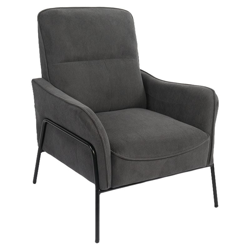 Πολυθρόνα ArteLibre ELAN Γκρι Σκούρο Ύφασμα Κοτλέ/Μέταλλο 94x77x82cm