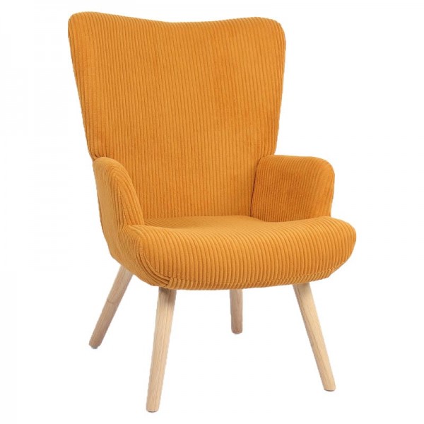Πολυθρόνα ArteLibre LIRA Μουσταρδί Ύφασμα Κοτλέ/Ξύλο 94.5x64x70.5cm