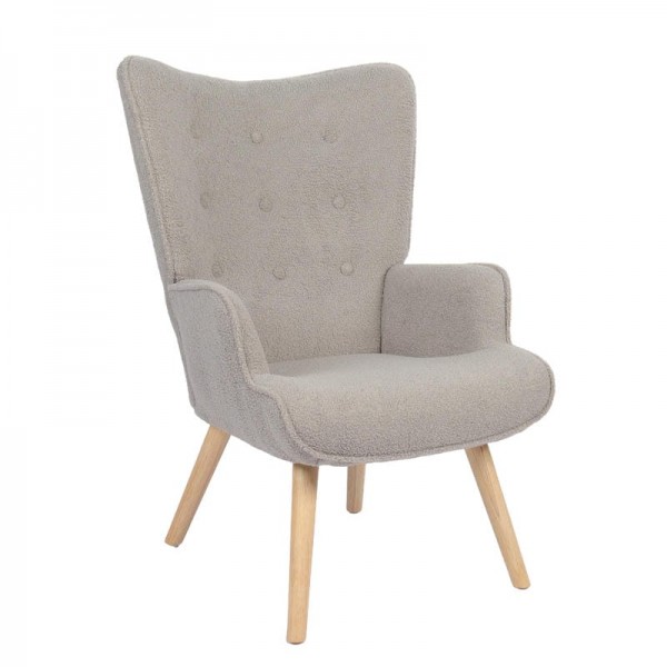 Πολυθρόνα ArteLibre MARION Γκρι Ύφασμα Μπουκλέ/Ξύλο 73x69x96cm
