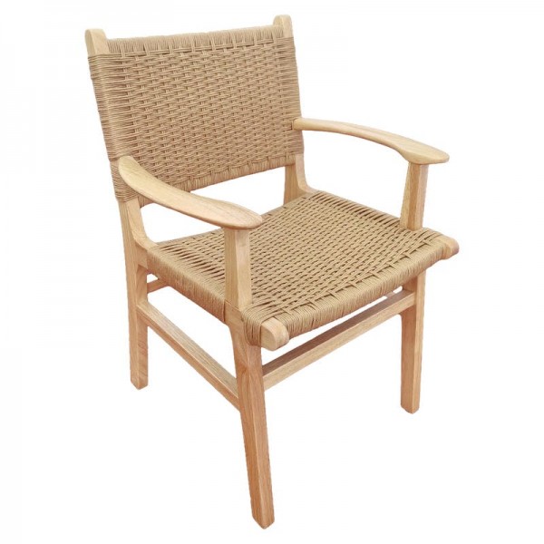 Κατασκευασμένη από ανθεκτικό ξύλο καουτσουκόδεντρου, η πολυθρόνα διαθέτει πλάτη και κάθισμα πλεγμένα με σχοινί. Η φυσική απόχρωση ξύλου συνδυάζεται με το σχοινί για ένα ζεστό και φιλόξενο αποτέλεσμα.