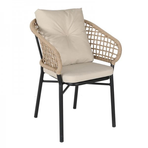 Πολυθρόνα Κήπου ArteLibre ANHUR Με Μαξιλάρια Μαύρο/Καφέ Αλουμίνιο/Rattan 60x58x84cm