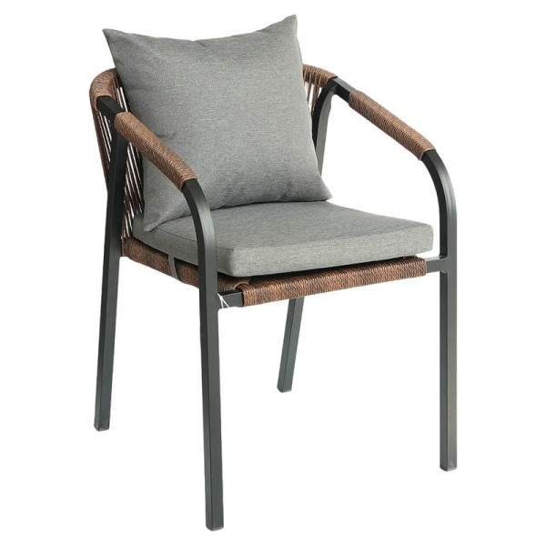 Η πολυθρόνα κήπου ArteLibre CURACAO σε μαύρο και φυσικό συνδυασμό αποτελεί ιδανική επιλογή για κομψούς εξωτερικούς χώρους. Ο σκελετός της είναι κατασκευασμένος από αλουμίνιο με διαστάσεις 25x25x1.2mm, προσφέροντας ανθεκτικότητα και μακροχρόνια χρήση. Η πλάτη διαθέτει στριφτό rattan PE διαμέτρου Φ4.5mm που προσφέρει άνεση και στυλ, ενώ το μαξιλάρι πάχους 5cm προσθέτει επιπλέον άνεση. Το φινίρισμα επιφάνειας με επικάλυψη εξασφαλίζει αντοχή σε διάφορες καιρικές συνθήκες και ευκολία στη συντήρηση. Ιδανική για ιδιωτικούς και επαγγελματικούς χώρους όπως καφετέριες και εστιατόρια, η πολυθρόνα προσφέρει μια πολυτελή και πρακτική λύση για κάθε εξωτερικό περιβάλλον.